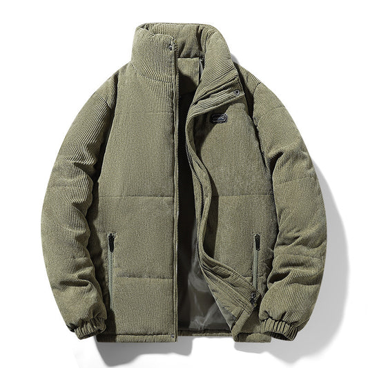 Mens Round Collar Winter Zipped Up Elbow Patch Jacket